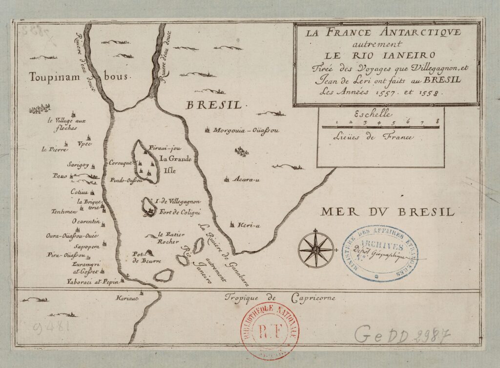 La France Antartique autrement le Rio de Janeiro, a partir das viagens de Villegagnon e Jean de Léry. 1557 / Acervo Bibliothèque nationale de France.