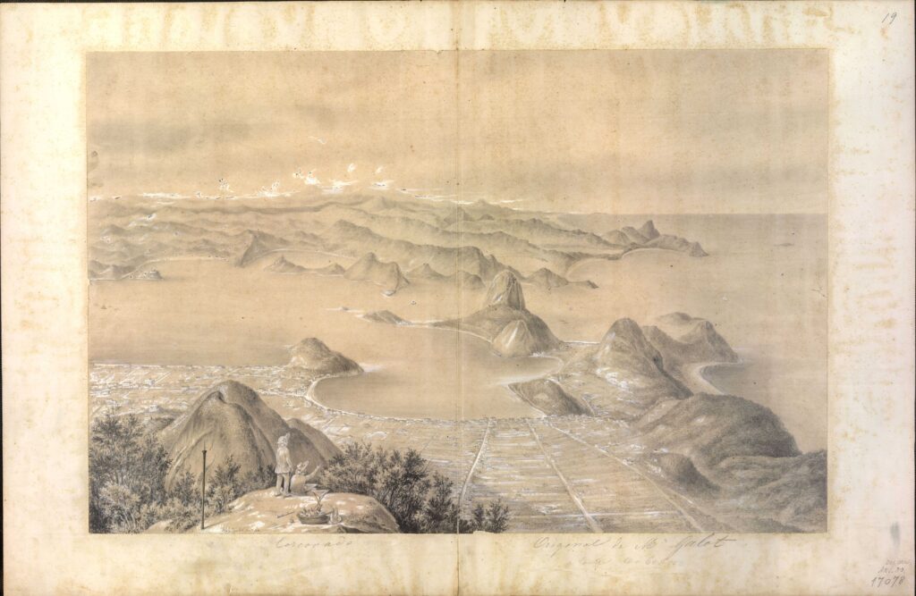 [Vista de parte da cidade e Bahia do Rio de Janeiro, Barra, Oceano, tirada a cavalleiro do Corcovado]. Théodore Alphonse Galot, . Rio de Janeiro, RJ: [s.n.], 1850. Acervo Fundação Biblioteca Nacional.