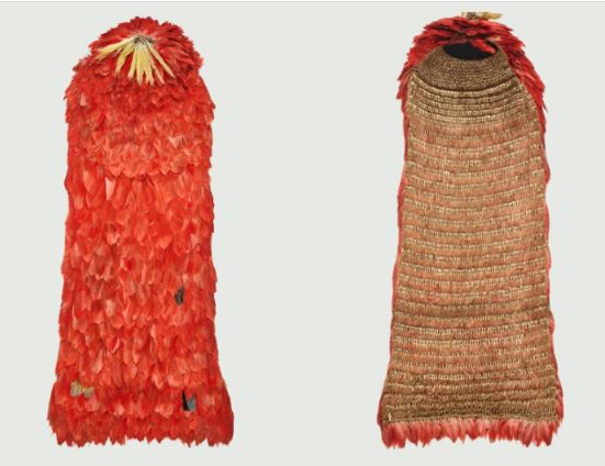 Manto Tupinambá que estava no acervo do Nationalmuseet, Dinamarca, devolvido ao Brasil em 2024. Ele mede 1,2 m de altura e 60 cm de largura.