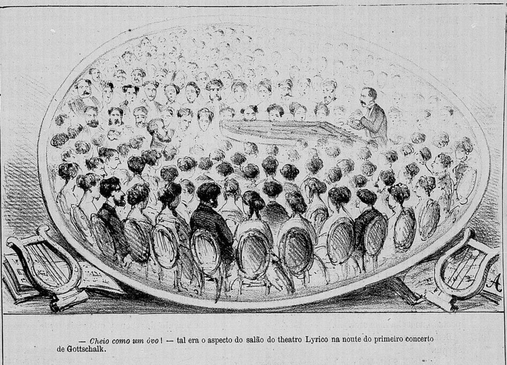 A passagem do pianista austríaco Sigismond Thalberg, em 1855, foi um divisor de águas: rival de Liszt na Europa, ele mostrou às elites do Império que o piano podia ser arte e espetáculo. Poucos anos depois, Artur Napoleão e Louis Moreau Gottschalk ampliaram esse fascínio. Este último protagonizou, em 1869, um lendário “concerto monstro”: dizem os jornais que 31 pianistas e duas orquestras teriam se reunido no Teatro Lírico — não especificando quantos músicos e quantos pianos ocuparam o palco simultaneamente.