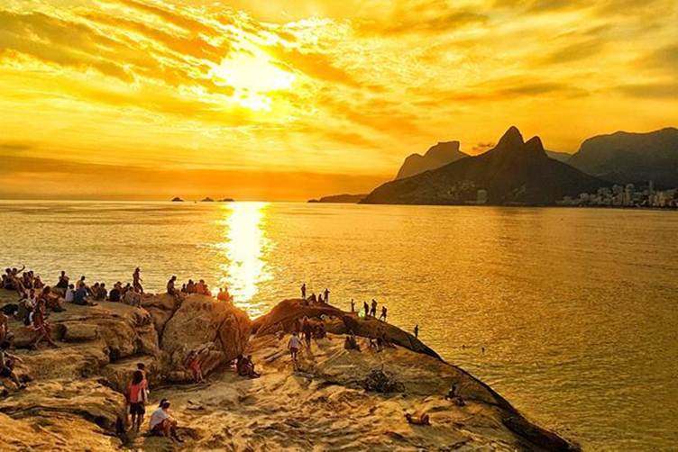 The sunset seen from the Arpoador, with Morro Dois Irmãos and Pedra da Gávea in the background, is worthy of applause and local residents and tourists do so every day. This tradition is said to have begun sometime in the 1960s. Journalist Carlos Leonam—a trendsetting columnist in the city—was one of the principal people to start the practice of applauding the spectacle created by the setting sun. In 1974, an advertisement for the swimwear brand Rhodianyl helped to make this a popular habit throughout Brazil, but the trend actually began in the Arpoador.